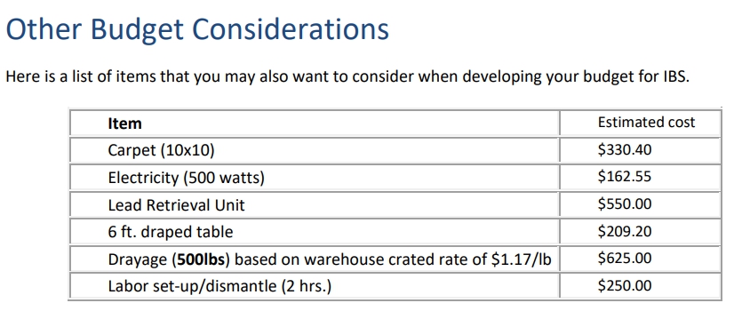 1.攤位費:淨場地(不含裝潢)100平方英呎(約9平方公尺)價格為US$5,900.-